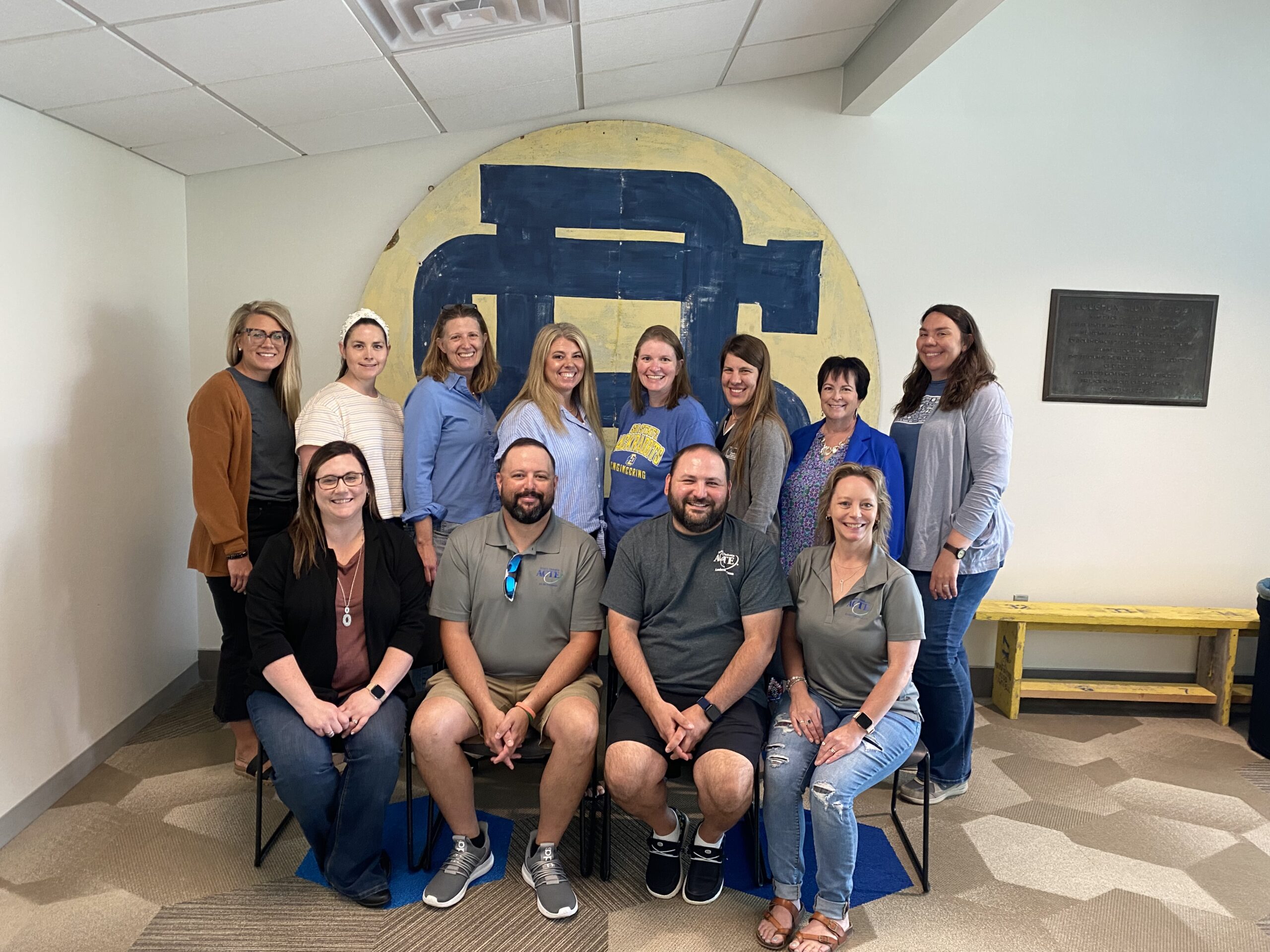 Back Row L-R: Katie Paulson, Post-Secondary Liaison; Breanne Lynch, Admin Division; Amy Pierson, BMIT Division; Amber Rost, DOE Liaison; Katrina Kruse, T&I Division; Sara Colombe, AFNR Division; Brigitte Brucklacher, FCS Division; Laura Hasselquist, Post-Secondary Liaison